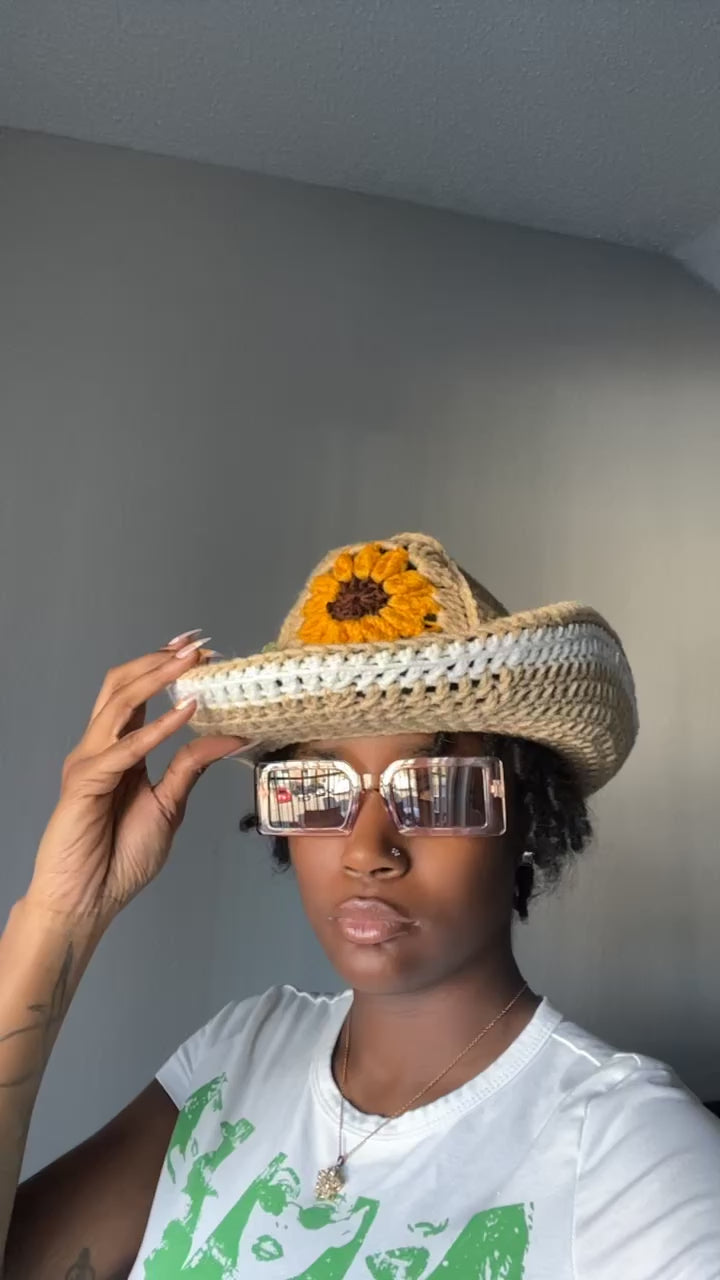 Giddy up with this hand-crocheted cowboy hat! Whether you're headed to the rodeo or just want to add some western flair to your outfit, this hat has got you covered (literally). Can create different styles to suit your unique taste.